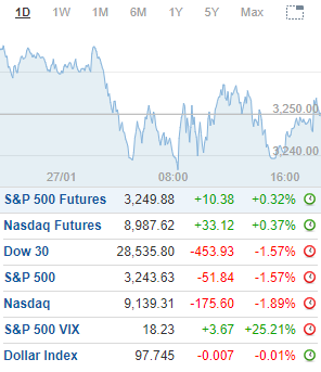 The market opened lower and showed no sign of recovery after China reported nearly 2,000 new cases of the Wuhan coronavirus were diagnosed over the weekend. Overseas markets in Asia were mostly closed for various holidays and led to some of the nervousness and gap lower.The major indexes came close to losing their gains for the year, and month, with the blue-chips briefly falling below its starting point for 2020. The Centers for Disease Control and Prevention said there have been no new U.S. coronavirus cases confirmed. However, the U.S. upped its level of caution about travel to China, raising its warning level to reconsider travel.The Nasdaq tested an opening low of 9,088 while closing below the 9,200 level. There is additional weakness towards the 9,000 level with a close below 9,100.The Dow was down for the 5th-straight session with the low tapping 28,440 and the close at 28,535. There is continued risk towards 28,200-28,000 if the 28,400 level and the 50-day moving average fails to hold.The S&P 500 settled at 3,243 and below crucial support at 3,250. There is additional selling pressure towards the 3,200 and the 50-day moving average on a move below 3,225.The Russell 2000 closed at 1,644 following the opening back-test to 1,633. Key support at 1,650 and the 50-day moving average was breached and failed to hold with risk towards 1,625 on continued weakness.