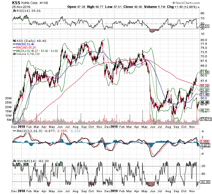 In recent days, Kohl’s (KSS) plummeted lower on poor earnings and guidance.