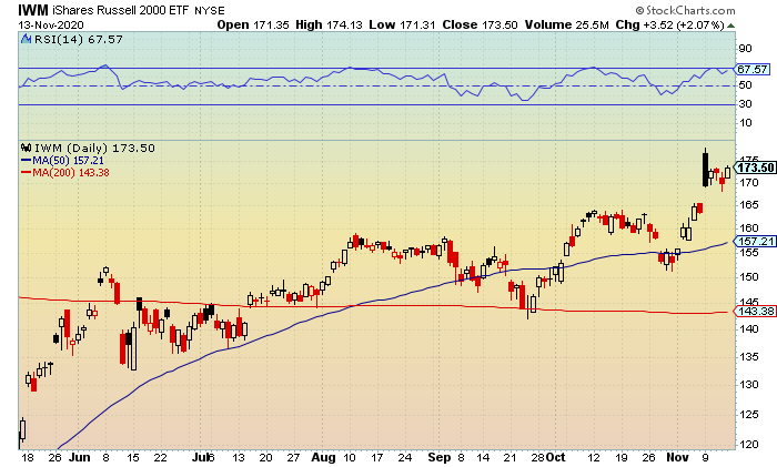 For the week, the Dow zoomed 4.1% and the S&P 500 gained 2.1%. The Russell 2000 skyrocketed 5.6% while the Nasdaq lost 0.6%.