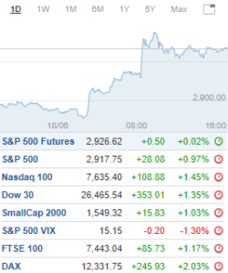 Stocks rose slightly on Monday, led by gains in tech, as investors looked ahead to a crucial Federal Reserve meeting this week. The Dow Jones Industrial Average rose 22.92 points to 26,112.53 while the S&P 500 closed 0.1% higher at 2,889.67. The Nasdaq Composite outperformed, rising 0.6% to 7,845.02 as tech shares gained. Facebook....