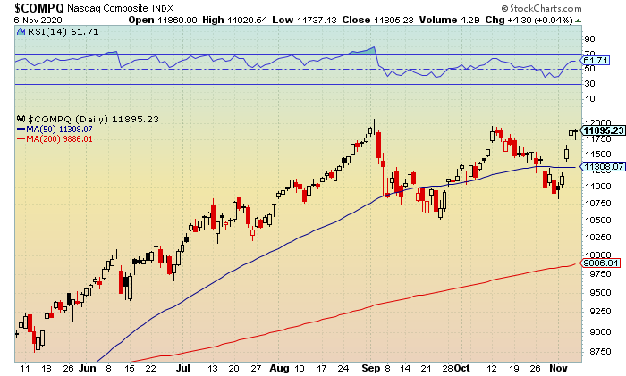 For the week, the Nasdaq skyrocketed 9% while the S&P 500 soared 7.3%. The Russell 2000 jumped 7% while the Dow was higher by 6.9%.