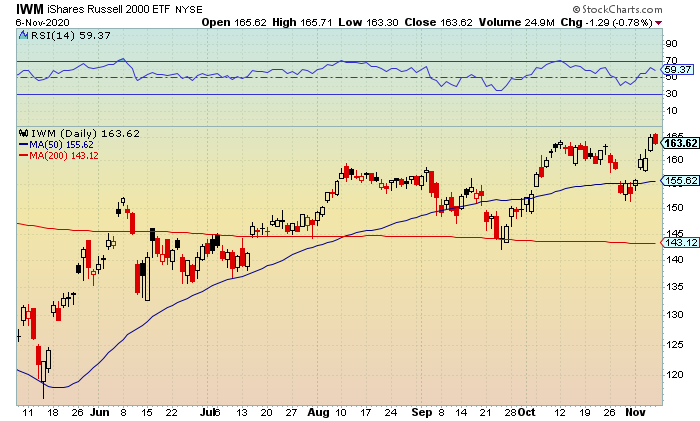Wall Street settled slightly lower on Friday to close out a strong week as former Vice President Joe Biden edged closer to victory in the presidential election. The monthly jobs report outperformed expectations and provided some upside as Tech showed strength while volatility continued to fade.